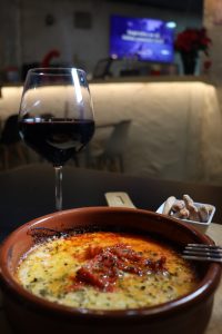 (nachos gratinados, queso chedar, ternera, pico de gallo, jalapeño, guacamole y crema agria)